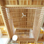 天井材や2階の床には杉を使用し、梁をそのまま見せる事で、木の温かみ、木目の持つ1/f ゆらぎ、家中に広がる木の香りに包まれて生活できます。