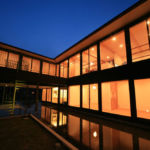 受け止めるように、南東に大きく開き、水盤のある中庭に面して生活をするスタイルとしています。