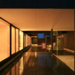 敷地の特性上奥まった旗竿状の土地をできるかぎり解放的にするため、狭いアプローチから建物が来訪者を