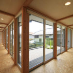 建物の配置は中庭を囲むように2階建てのL型プランとし、水盤、ピロティ、木製デッキテラスなどが繋がります。